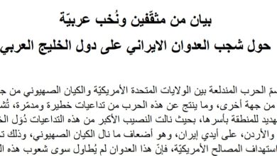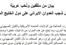 بيان من مثقّفين ونُخب عربيّة حول شجب العدوان الايراني على دول الخليج العربي في…