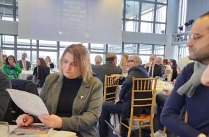 ثم تحدثت السيدة ناتالي بونديل التي قدمت تفاصيل عن المتحف، مرفق بصور كانت تبث على الشاشة العملاقة بالصالة. بعدها دعي الحضور إلى مائدة الغداء.